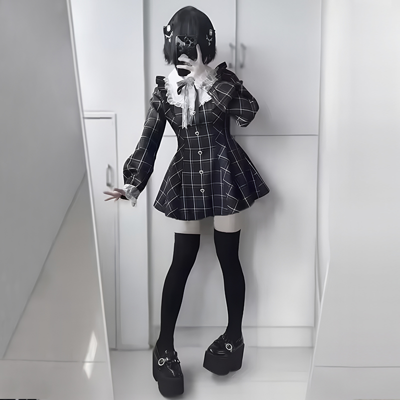 Dieses von japanischem Stil inspirierte Kleid verfügt über einen Matrosenkragen, eine übergroße Schleife und einen plissierten Mini-Saum. Dekorative Knöpfe und zarte Spitzendetails verleihen dem Look einen Hauch von Vintage. Eingearbeitete Shorts sorgen für zusätzlichen Komfort und Bewegungsfreiheit. Die strukturierte Passform macht es ideal für Events, Fotoshootings oder stilvolle Alltagsoutfits.