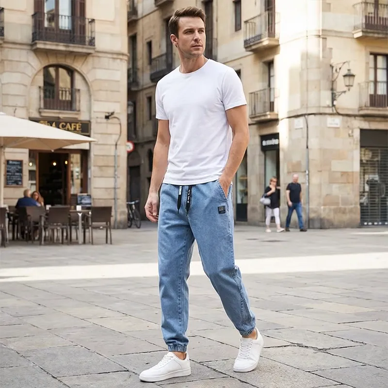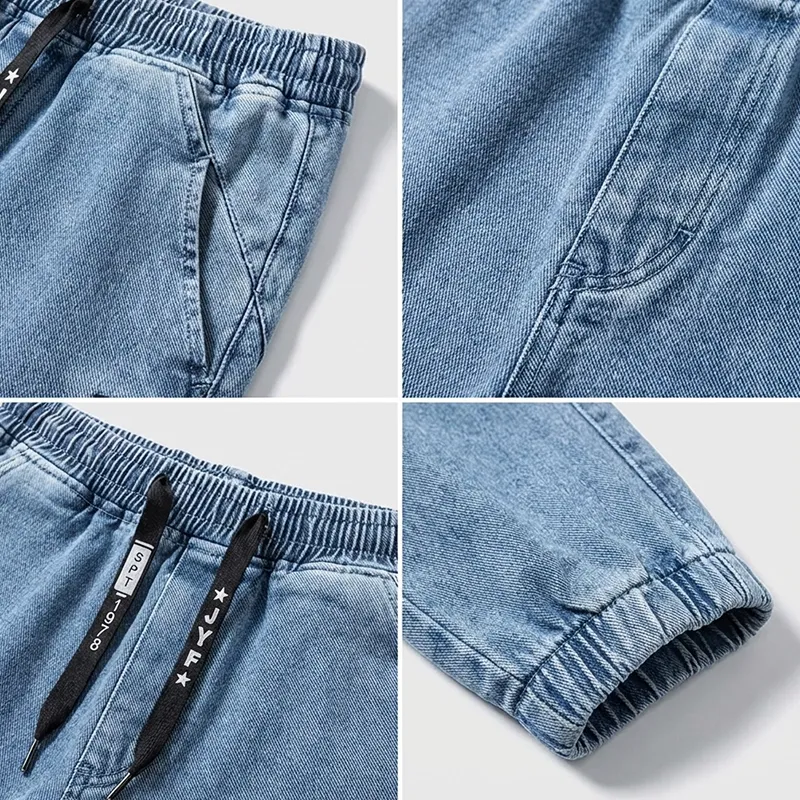 Wirklich großartige Denim-Jogginghosen. Ich spiele mit meinen Kindern und sie behalten trotzdem ihre Form. Das weiche Material macht sie noch besser für den ganzen Tag.