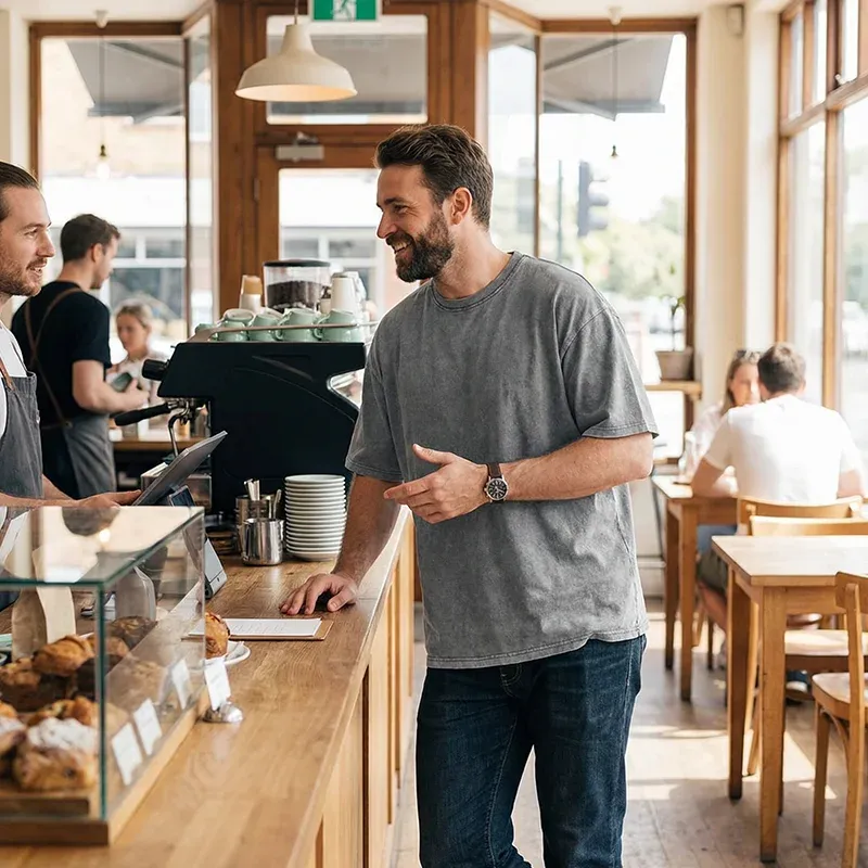Liam C.Dieses gewaschene Baumwoll-Gefühl ist so angenehm und weich. Ich habe es sogar beim Wandern getragen und es war den ganzen Tag bequem. Wirkt auch sehr robust.