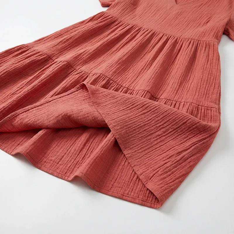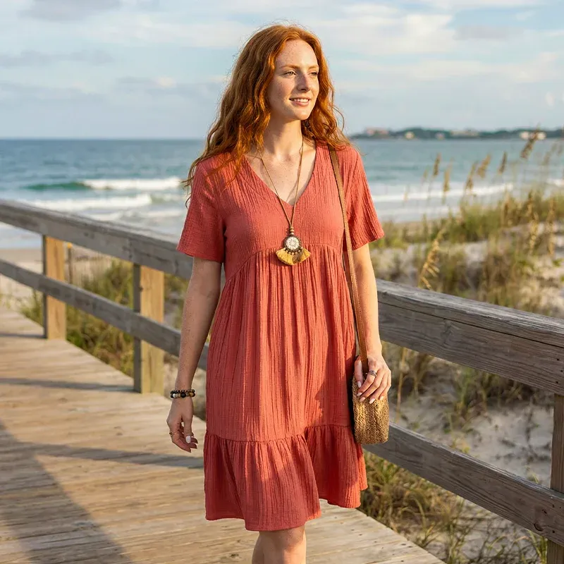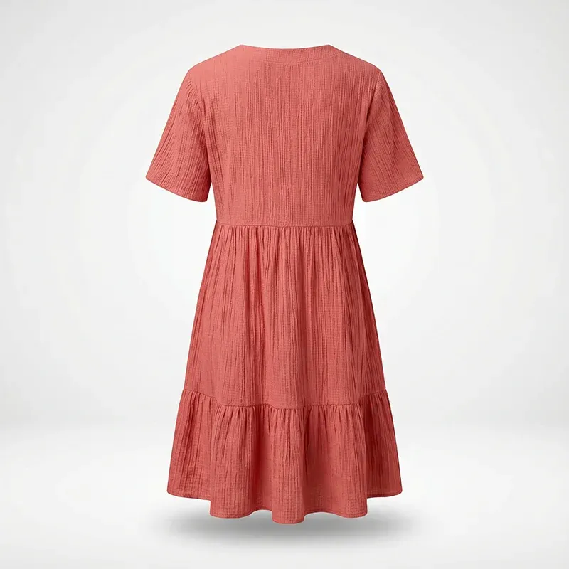 Grace S.Ich habe dieses Kleid zu einem Grillfest getragen und selbst nach ein paar Essensflecken sah es noch frisch aus. Das Material ist erstaunlich strapazierfähig für Sommertage.