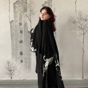 Sophia L.Dieses Kleid zu tragen, fühlt sich an, als würde man in ein Märchen eintreten. Der schwarze Stoff in Kombination mit der zarten Stickerei ist einfach umwerfend. Ich liebe die Mischung aus Tradition und modernem Flair.