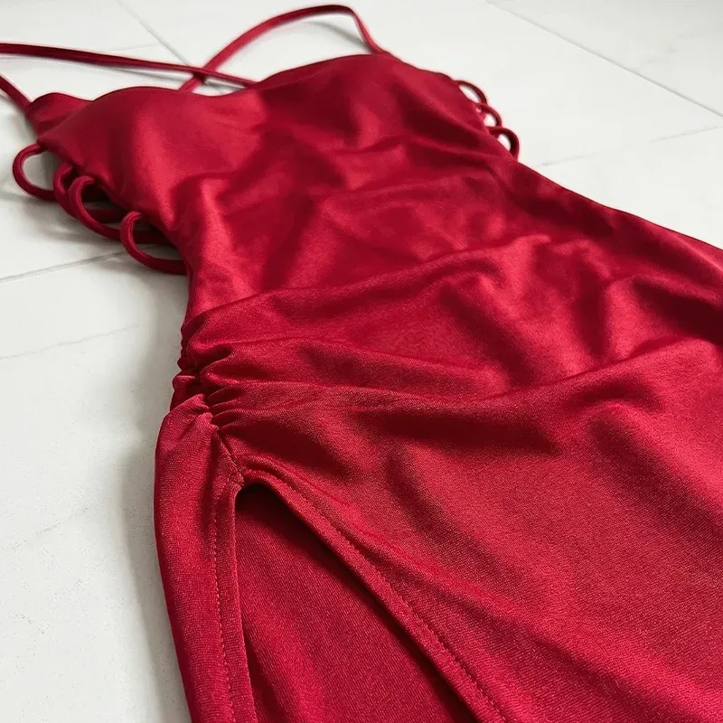 Dieses Kleid vereint Extravaganz mit Eleganz und ist ideal für einen Abend aus. Das rückenfreie Design sorgt für eine verführerische Note und betont die gesamte Ausstrahlung. Spaghettiträger verleihen eine zarte und feminine Silhouette, die die auffälligen Details wunderschön ausgleicht. Gefertigt aus hochwertigen Materialien garantiert es Komfort den ganzen Abend über. Kombinieren Sie das Kleid mit eleganten High Heels und Accessoires, um den fesselnden Look zu vervollständigen.