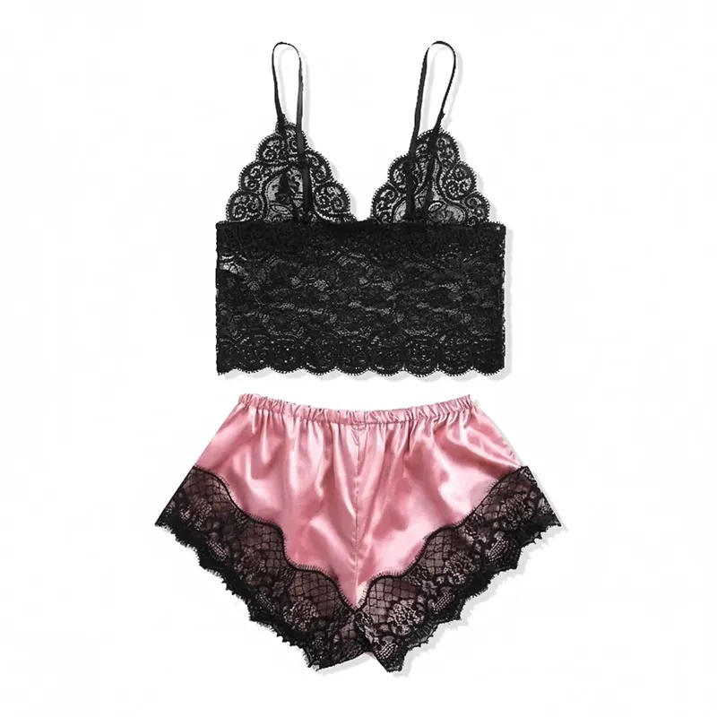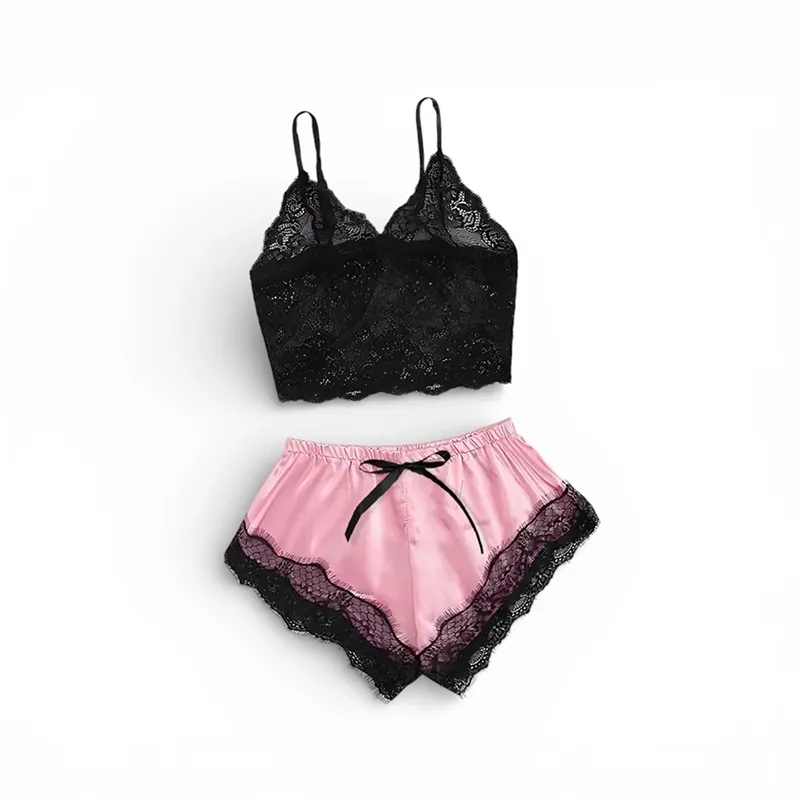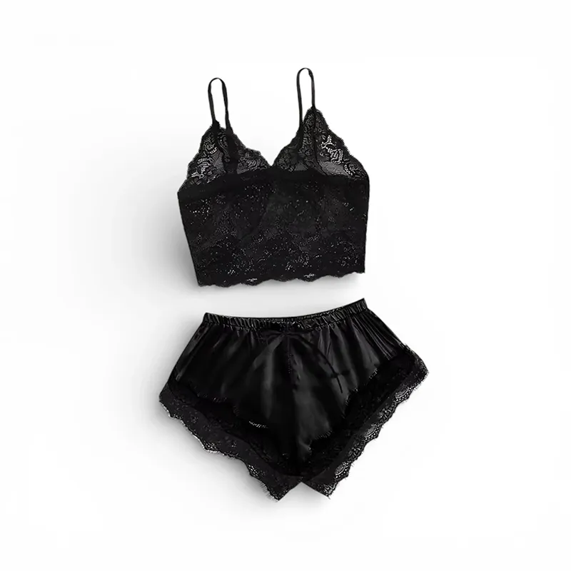 Spitzen-Pyjama-Set mit Top und Shorts für Damen