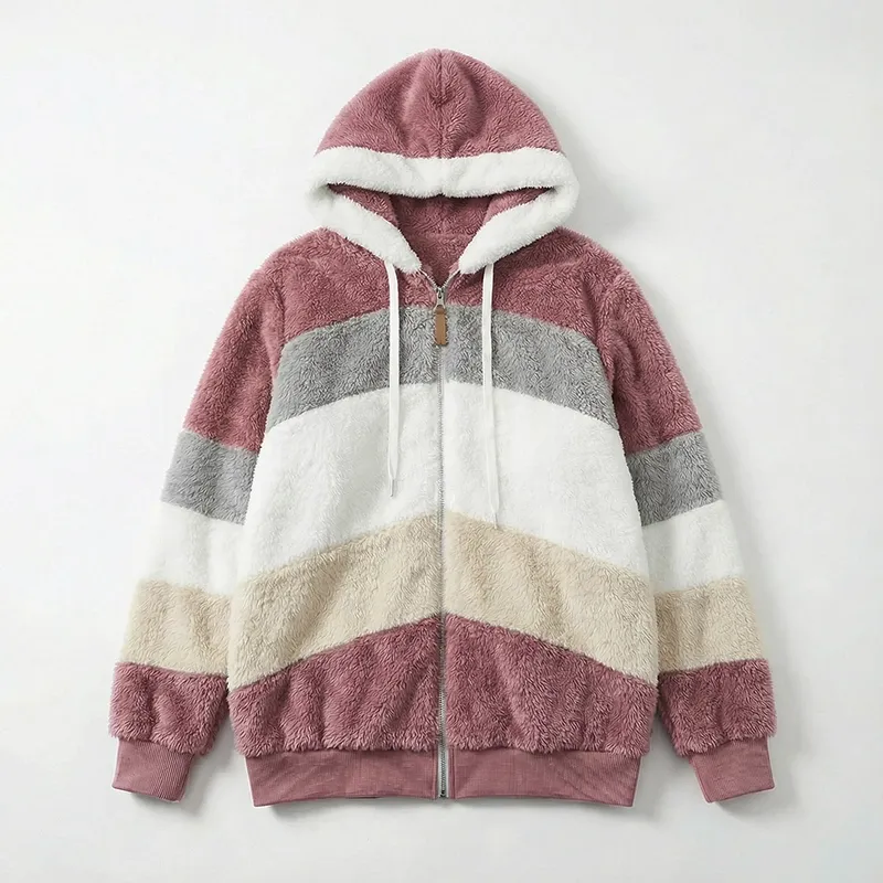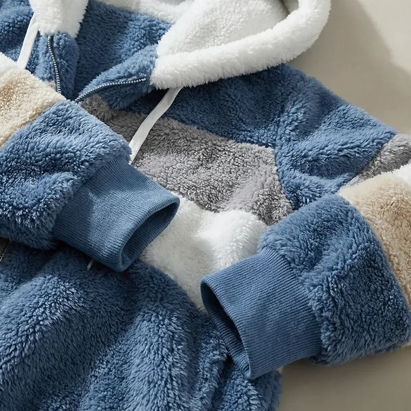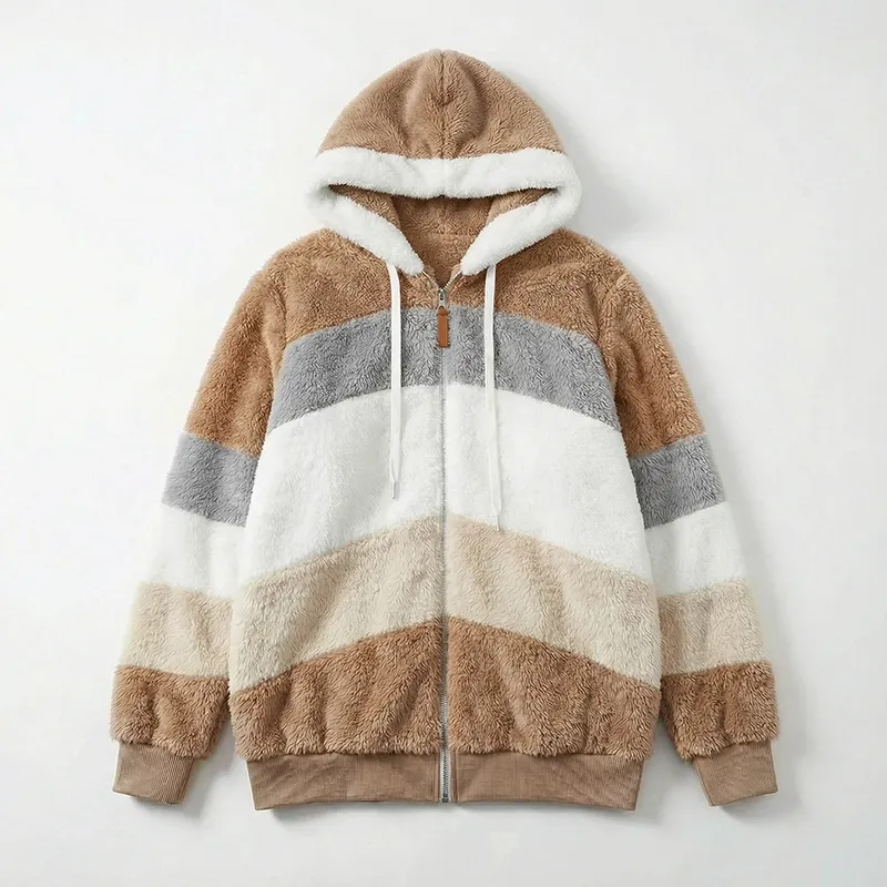 Diese kuschelige Kapuzen-Plüschjacke hält Sie in kalten Jahreszeiten warm und strahlt Gemütlichkeit aus. Das luxuriöse Fellfutter sorgt für langanhaltende Isolierung – ganz ohne viel Volumen oder unangenehmes Tragen. Sie bietet wolkenweiche Behaglichkeit auch bei härtesten Winterbedingungen. Die großzügige Kapuze schützt vor schneidendem Wind, während der Kragen zusätzlichen Schutz bietet. Das Oversize-Design ermöglicht einfaches Layering und uneingeschränkte Bewegungsfreiheit.
