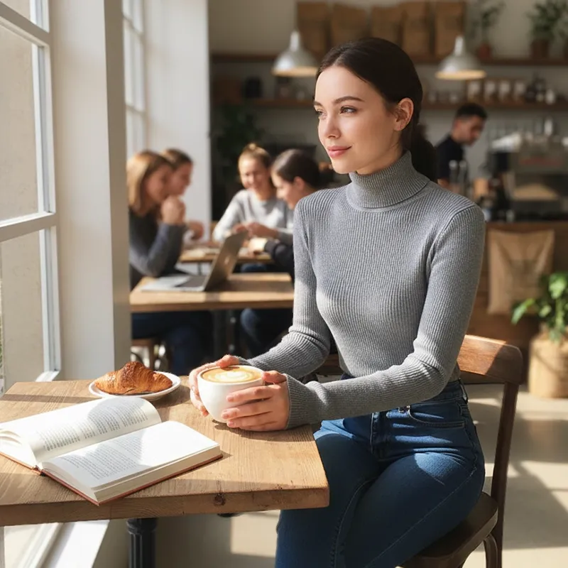 Ich liebe, wie weich und bequem sich dieser Rollkragenpullover anfühlt. Er hält mich den ganzen Tag warm und ich kann ihn problemlos unter Jacken tragen. Super süßer Stil!