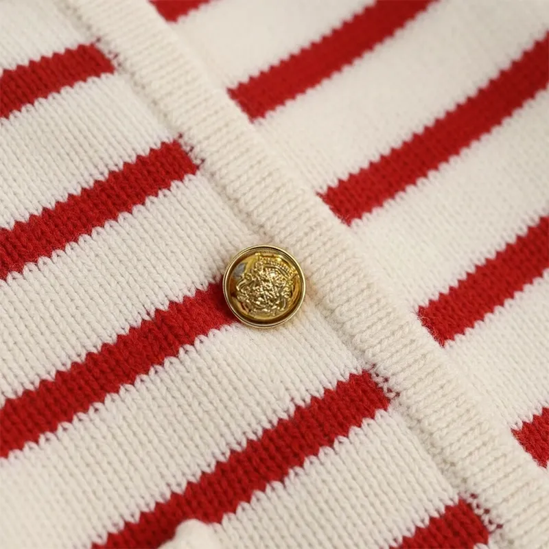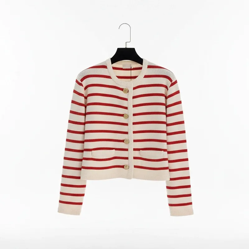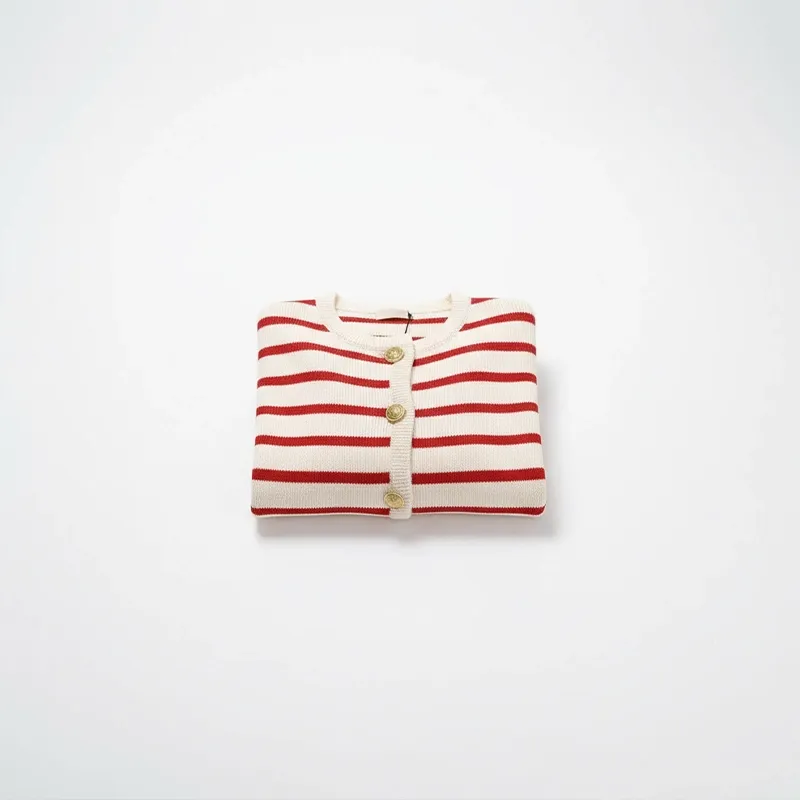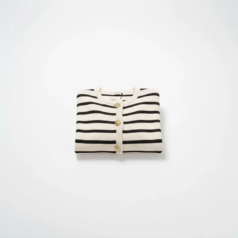 Diese Strickjacke bietet zeitlose Streifen, die jedem Alltagslook Eleganz verleihen. Der weiche Stoff fühlt sich angenehm auf der Haut an und sorgt den ganzen Tag für Komfort. Die langen Ärmel bieten an kühleren Tagen Wärme und machen das Layering mühelos und stilvoll. Das vielseitige Design passt sowohl zu entspannten Ausflügen als auch zu eleganten Abenden und lässt sich leicht an verschiedene Anlässe anpassen. Ergänzen Sie Ihre Garderobe um dieses essentielle Teil, das Praktikabilität mit dauerhaftem Stil vereint.