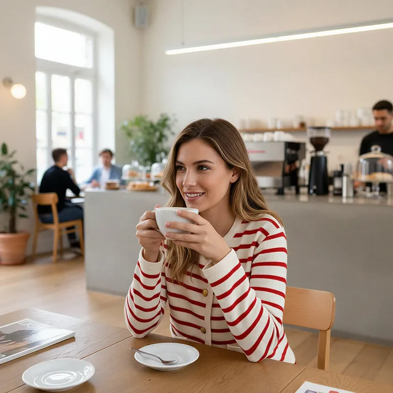 Diese Strickjacke ist so gemütlich und elegant! Die Streifen lassen jedes Outfit hervorstechen. Der Stoff ist weich und sie passt perfekt, hält mich den ganzen Tag bequem.